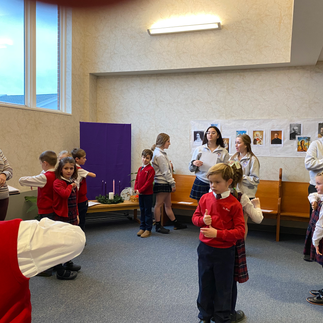 On Wednesday, November 30, our peer ministers taught 2nd graders at St. Mary's School in Ballston Spa about what it means to make their first Communion. They practiced prayers, did a church scavenger hunt and baked bread all in preparation for their first Communion!